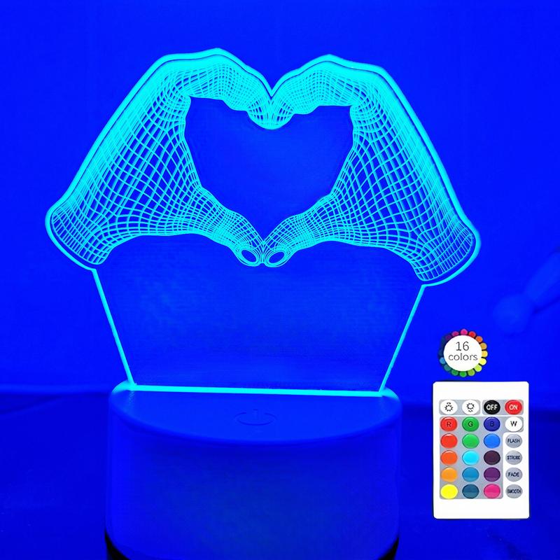 Create a cozy and romantic atmosphere with this beautiful 3D heart-shaped hand night light!