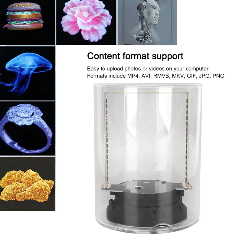 1、Multiple Formats: 3D hologram fan is easy to upload photos or videos on your computer in MP4, AVI, RMVB, MKV, GIF, JPG, PNG 2、WiFi Function: 3D advertising player is compatible with WiFi for transferring and loading 3D displays. Allows for fast data transfer by using WiFi. Can pull files over WiFi and play them immediately. 3、Supports Memory Card: The LED hologram fan also allows you to save images to a memory card, insert the memory card into the card reader at the bottom of the fan, and play 3D animations. 4、Easy to Place and Install: The 3D hologram projector can be placed anywhere in your home, office or store, and can also be mounted on the wall. Fixed on the handrail for entertainment or exhibition. 5、Wide Application: 3D advertising player is suitable for stores, supermarkets, offices, markets, shopping centers, colorful stores, restaurants, jewelry stores and other retail outlets. 6、Protective Cover, Decoration: The transparent protective cover of the 3D hologram projector ensures the safety of children and minimizes noise. Lightweight and easy to carry. The unique design ensures that it becomes part of the home decoration.