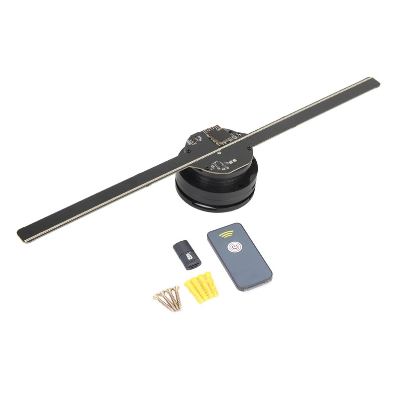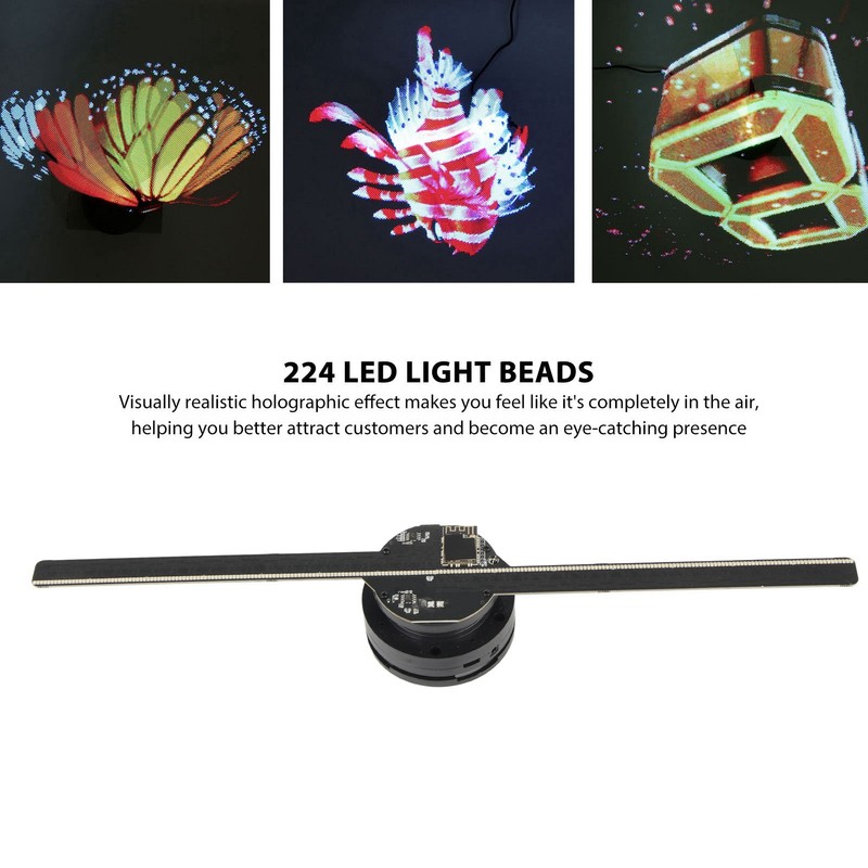 1、800X480P RESOLUTION: 3D holographic fan provides 800x480P resolution for a clear view of the video image environment even in high ambient illumination, supporting common video, animation, and image displays. 2、224 LED LIGHT BEADS: 3D hologram fan utilizes 224 LED light beads. The visually realistic holographic effect makes you feel like it's completely in the air, helping you better engage your customers and become an eye catching presence. 3、SOFTWARE OPERATION: Hologram projector fan customized video and image editing, memory card comes with pattern editing software, editing software for Windows 7 10 computer operating system. 4、MULTIPLE CONTROL METHODS: 3D holographic display supports WiFi control, remote control, computer control, mobile app control and more. Compatible for Windows, for Android, for IOS these common systems. 5、WIDE RANGE OF USES: Holographic advertising display is widely used in shopping malls, restaurants, city transportation, hospitals, schools, businesses, event venues, stages, exhibition halls and so on.