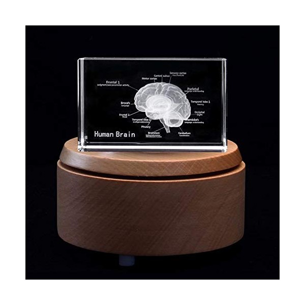 3D Human Brain with Labels Anatomical Model Paperweight(Laser Etched) in Crystal Glass Cube Science Gift (Included LED Base)