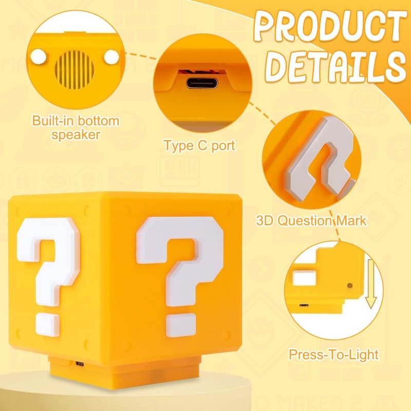 • Easy to use: 3D icon light night lights have a mute setting, long press to adjust the mute mode. One press of a button is enough to turn on the light, and question mark soundtrack lamp cube night light sounds specific game music