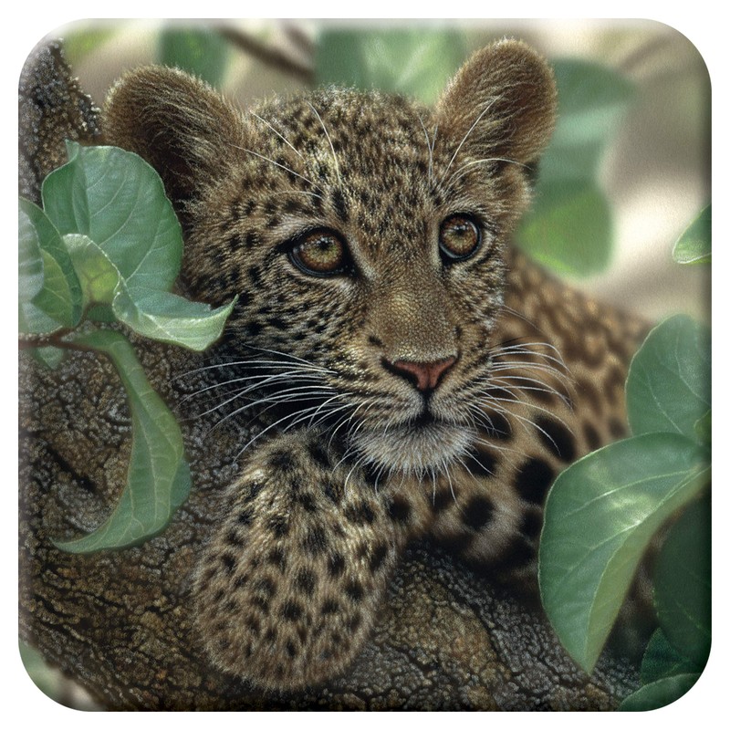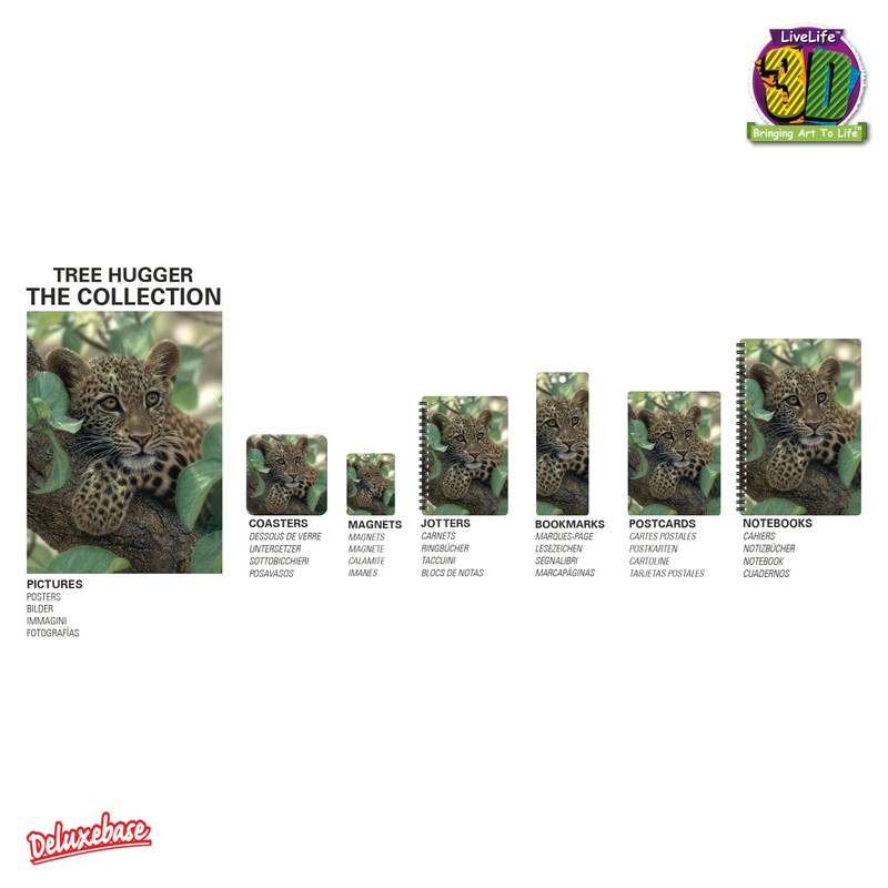 3D LiveLife Cork Coaster - Tree Hugger from Deluxebase. Lenticular 3D Cork Leopard Cub Coaster. Non-slip drinks mat with original artwork licensed from renowned artist, Collin Bogle