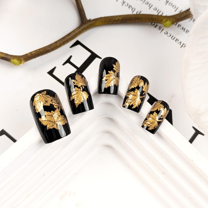• Easy to Apply: Just choose the fall leaf nail piece that suits you, polish the nail bed, paste the jelly glue we provide, and press trendy nails for 30s to get the natural fallen leaves manicure that girls like