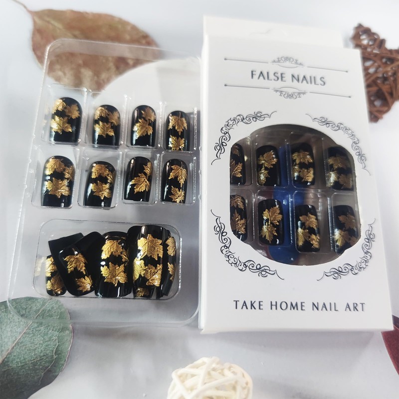 • 3D Maple Leaf False Nails Package Contains: You will get 24 pcs square false nails, 1 pcs nail file, 24 pcs nail double-side stickers, 1 pcs wooden stick for removing medium false nails