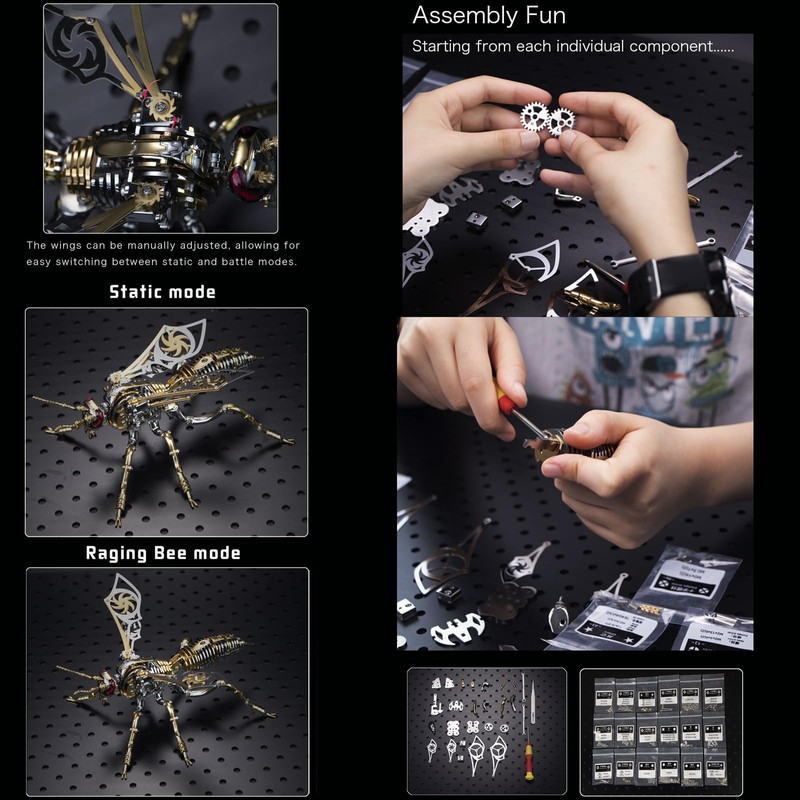 • [3D Metal Wasp Puzzles] This original metal mechanical bionic model kit can enhance mental acuity, reasoning, visual perception, and manual dexterity. If you find it challenging, you can work on it with your family.