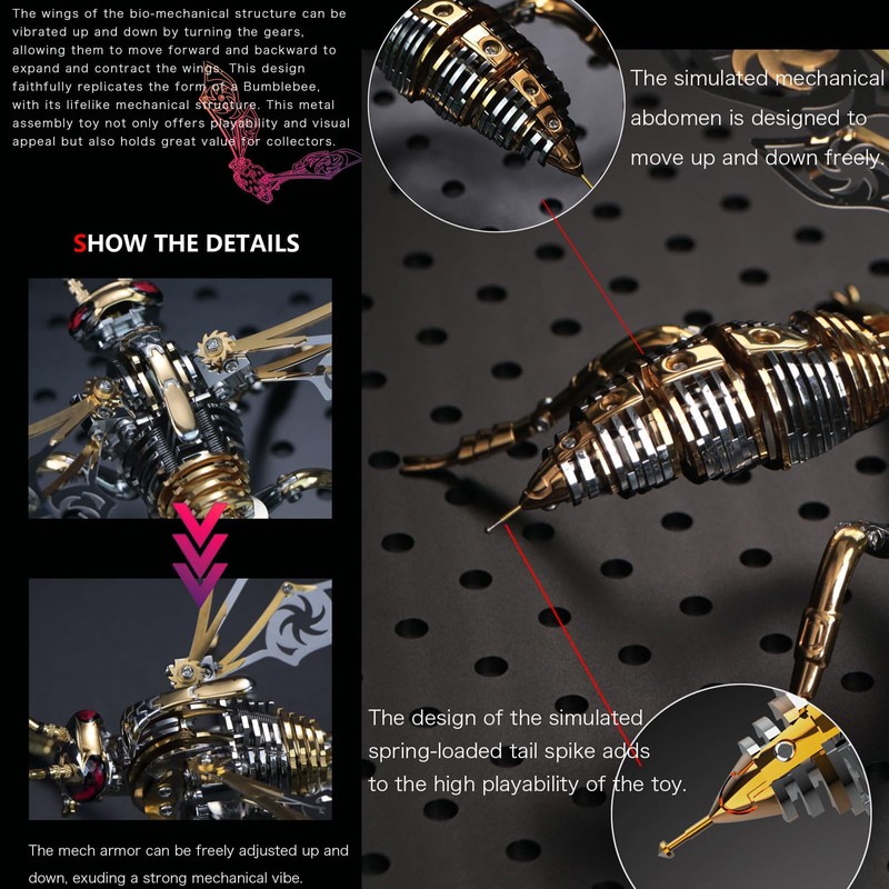 • [Product Details] When assembling, carefully follow the instructions. The head, tentacles, trunk, wings, abdomen, and legs are all included in this metal wasp model kit. In order to maintain a durable metallic luster and exquisite appearance, each component is smooth polished. Assembling is ideal for DIY enthusiasts because it releases pressure.