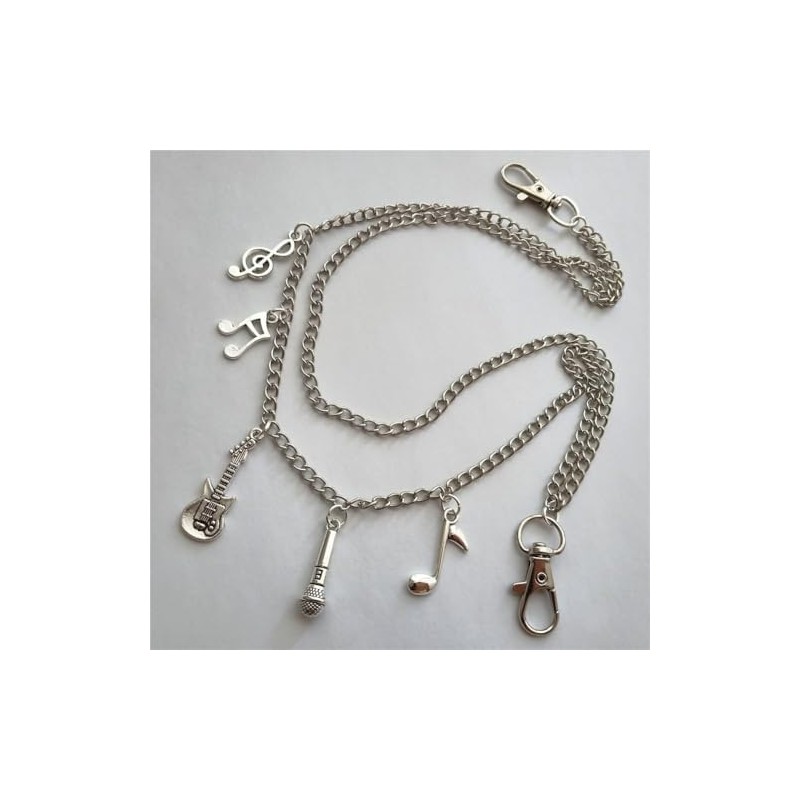 3D Mini Guitar and Microphone Charm Pant Chain, Music Notes Pendant Trouser Punk Accessories, Hip Hop Layered Belt Chains, Music Lover Jewelry Pocket Chain