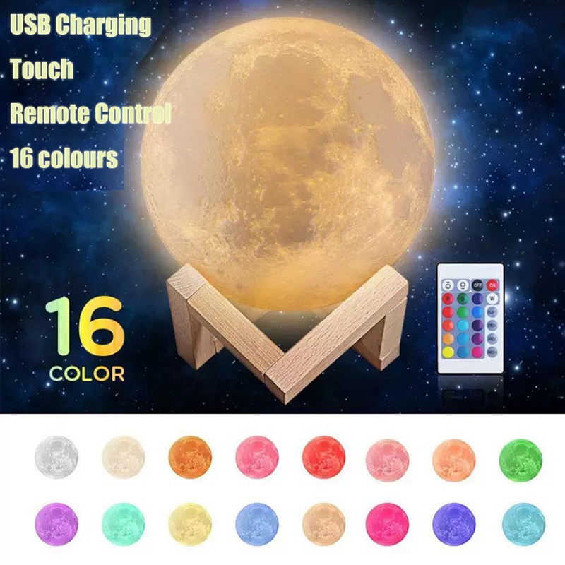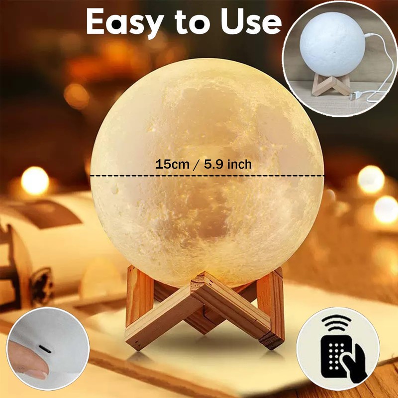 3D Mondlampe Nachtlicht, 15CM/5.9" Nachttischlampen Schlummerleuchten für Kinder,16 Farben LED Touch Fernbedienung & USB wiederaufladbares 3D Mondlicht Mond-Leuchte mit LED für Kinder, Frauen Geburtst