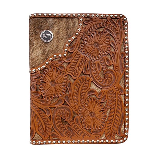 - Silver tone studded detail and antique brown steel praying cowboy concho