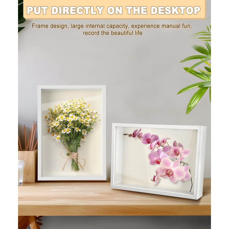 - Size: the square shadow box has an outer frame size of 22.5 x 31.5 cm and a thickness of 6 cm, an inner frame size of 21 x 29.7 cm and an inner depth of 5 cm, enough space to put more things in, the shadow box can be hung directly on the wall with the hooks on the back. The hooks also prevent the shadow box frame from slipping out of position.