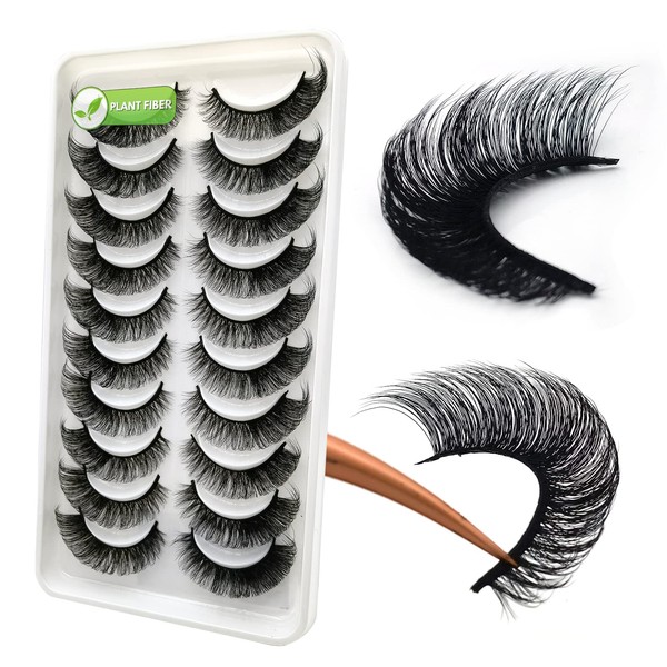 3d Plant Fibre Russian Strip Lashes, D Curl Lash Strips, Natural False Lashes Mink, Wispy Fake Lashes, D Curl Strip Lashes, Natural Wispies Mink Eyelashes, Faux Mink Eyelashes Natural Look(DC10)