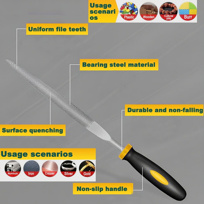 - 5 - Piece File Set: The 5 - piece needle file set, 6 inches (150 mm) long, made of hardened alloy steel, is for fine - detail work or smoothing edges after blade deburring.