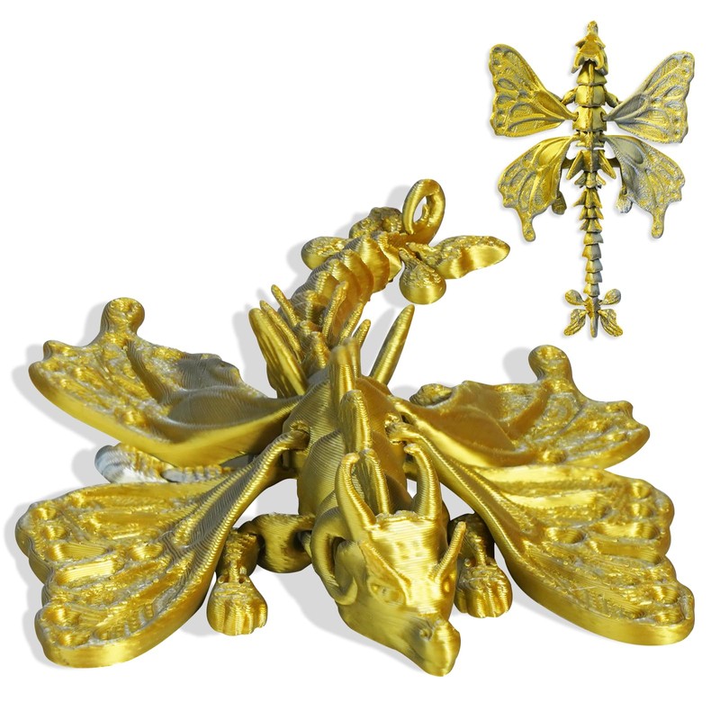 3D Printed Articulated Butterfly Dragon - Golden Executive Desk Toy
