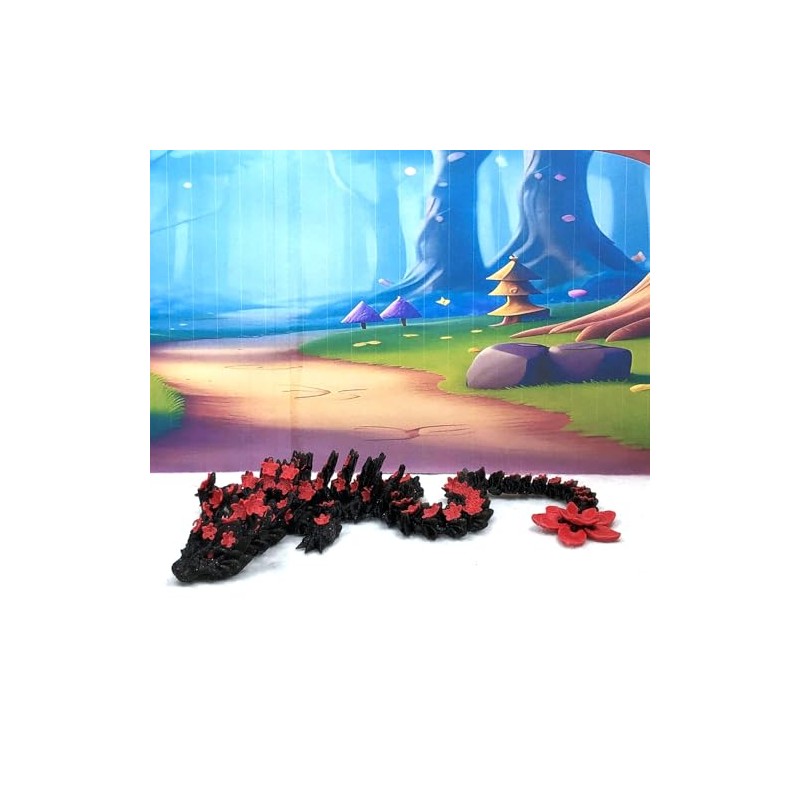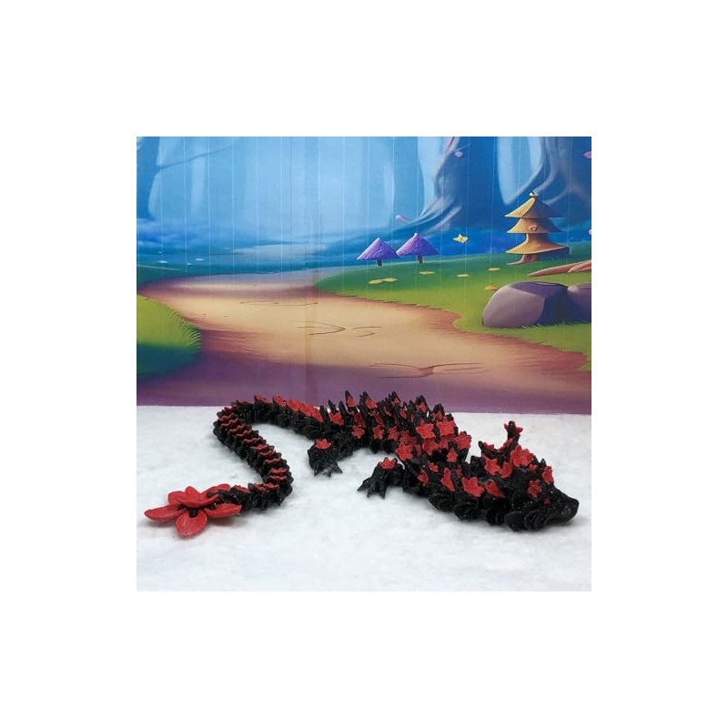 3D Printed Black Cherry Blossom Dragon, Articulated 12" Dragon Fidget ADHD Autism Toy, Executive Home Desk Toy BLK-DR (Black and Red)
