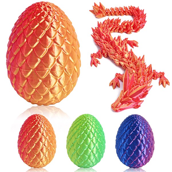 3D Printed Dragon Eggs - Dragon eggs contain dragon - Cool Crystal Dragon - office and home decor artwork - Funny and mysterious toys - Dragons with flexible joints (Laser Red Edition[with eggs])