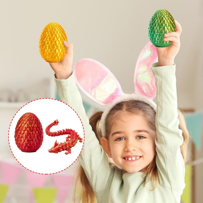 3D Printed Dragon in Egg,8.5CM Mini Dragon Egg,Flexible Joints Home Decor Executive Desk Toys,Home Office Decor Executive Desk Toys for Autism/ADHD (Red)