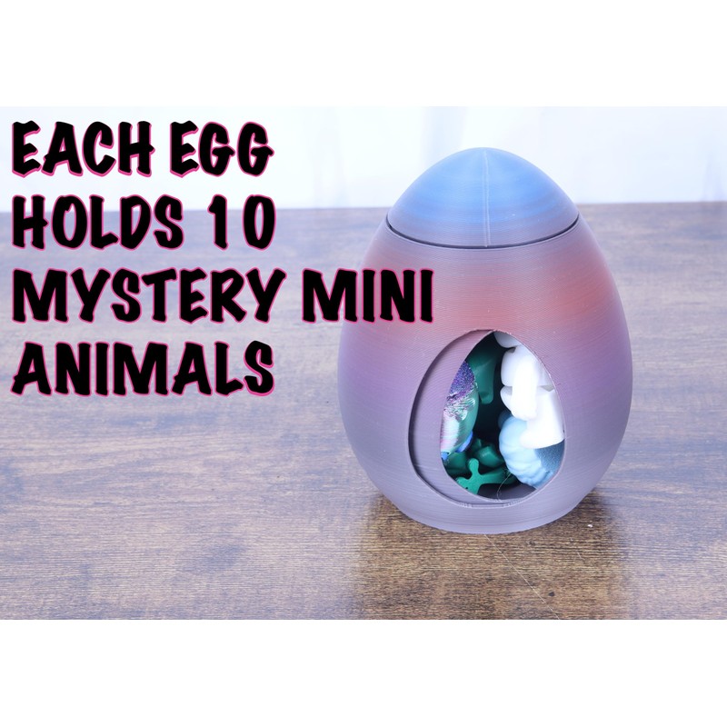 - CONTENTS: Pack includes 10 unique mystery animal figures and a special revolving egg, each piece individually 3D printed for exceptional detail and unique colours