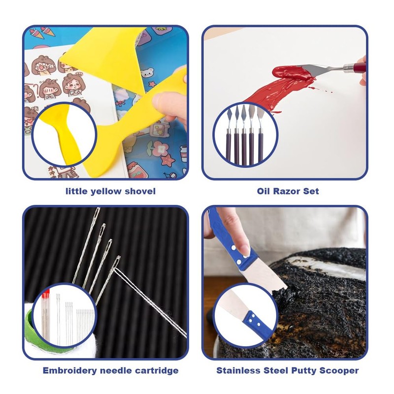 3. 3D printing smoothing tool kit equipped deburring tools with 360° rotatable blade, for precisely refining edges of artwork; engraving knife and files for easy handling of different locations on the model surface, edges, corner, etc. Plastic and metal spatulas help to separate the model and platform.