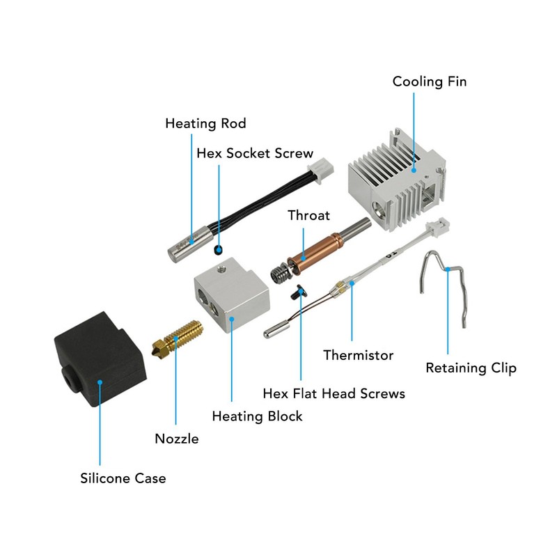 - SIMPLE INSTALLATION: Remove the old hot end and install the new hotend to start. (heating tube, thermistor, nozzle etc., are pre installed)