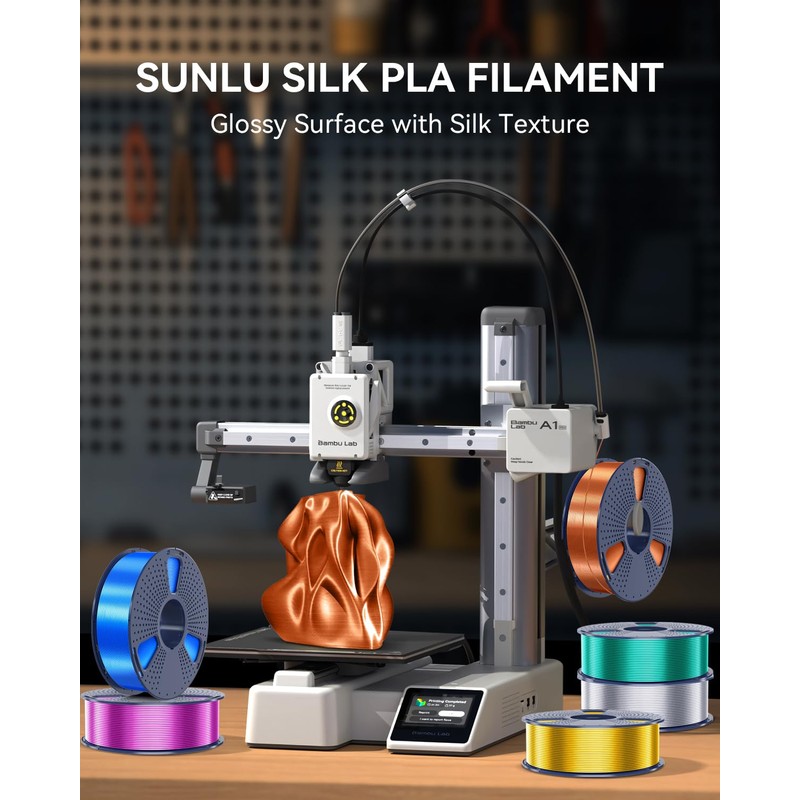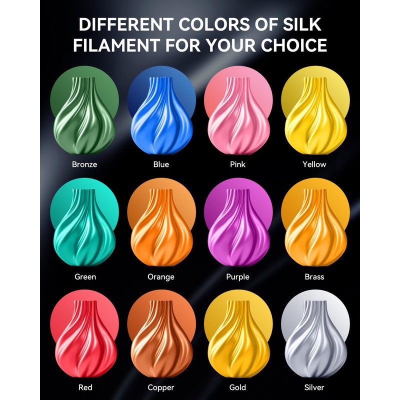 - ①【SUNLU Shiny SILK PLA Filament】Compared to regular PLA 3D printer filament, SUNLU SILK PLA 3D printer filament has a glossy, smooth silky surface that does not require polishing. SUNLU fantastic SILK filament has great colour and shine, making it ideal for printing art and craft. Great SILK PLA filament for any 3D print job. It has a nice silk looking shine on prints.