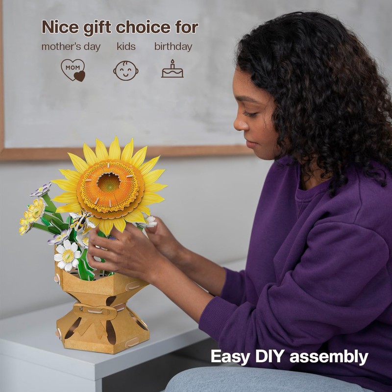 - 🖐️ DIY EXPERIENCE 🖐️ These 3d puzzles for adults are an excellent choice for improving manual dexterity and providing an enriching 3d puzzle building experience. Enjoy a unique diy experience with the flower bouquet box sunflower.
