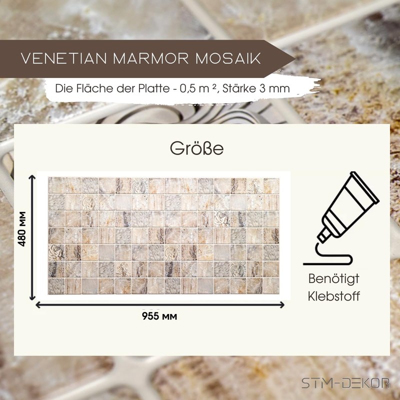 3D PVC Wall Panels, Ceiling Panels, Mosaic Look, 1 Panel - 0.5 m², Wall Decoration, Wall Cladding, Waterproof, Marble Venetian