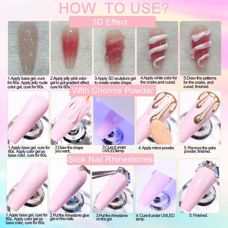 - 【Nail Charm Adhesive Gel】Ths sculpting gel can also be use as adhesive glue gel for false nail tips /gems/beads or other nail charms.(Tips: cured required)