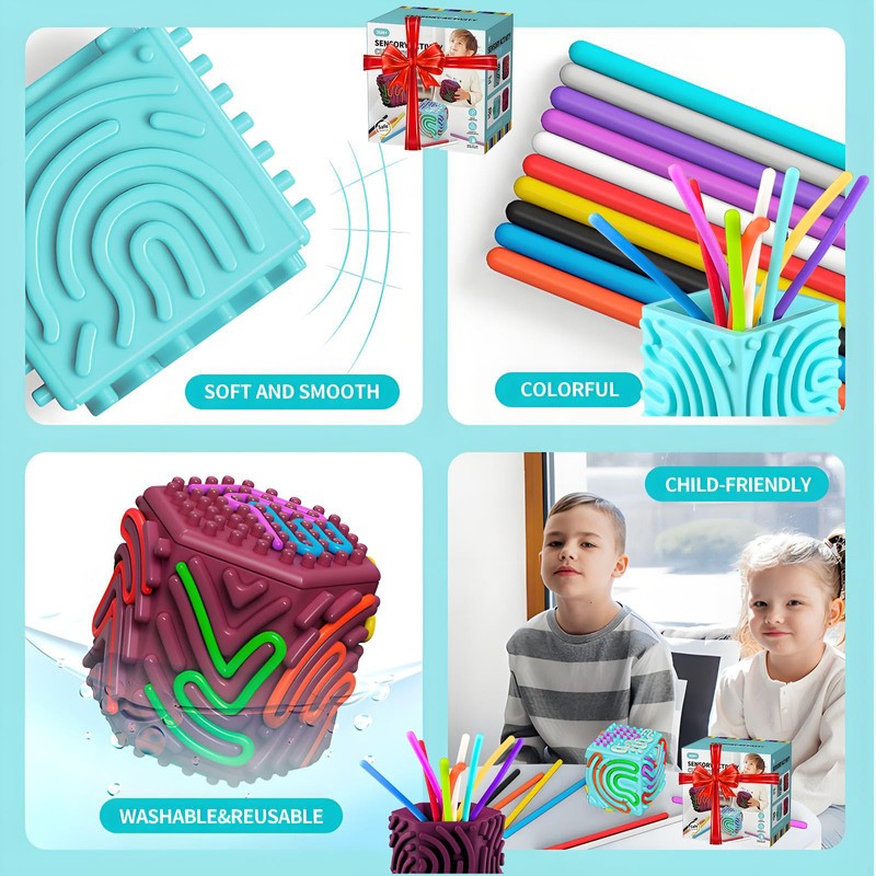 Our upgraded silicone sensory activity board features a revolutionary 3D cube structure with 6+ & 8+ interactive surfaces. This multi-dimensional fidget board provides enhanced tactile stimulation, making it perfect as ADHD tools for kids and autism sensory products.