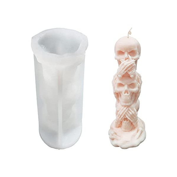 3D Skull Candle Mold Column Silicone Resin Mold for Aromatherapy Candles Resin Casting Homemade Soap Wax Making Polymer Clay DIY Craft