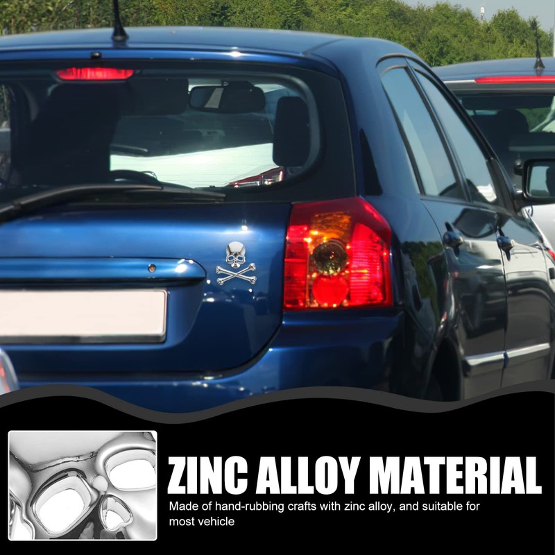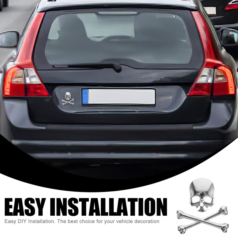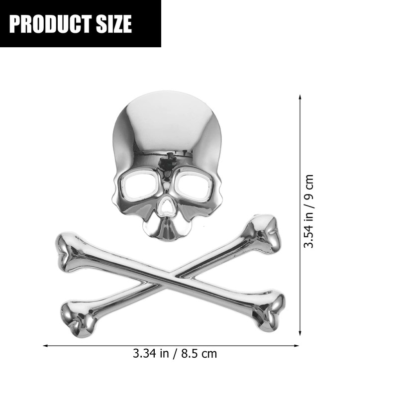 3D Skull Metal Skeleton Crossbones Sticke decal Skull Emblem Badge for Car Motorcle (Silver)