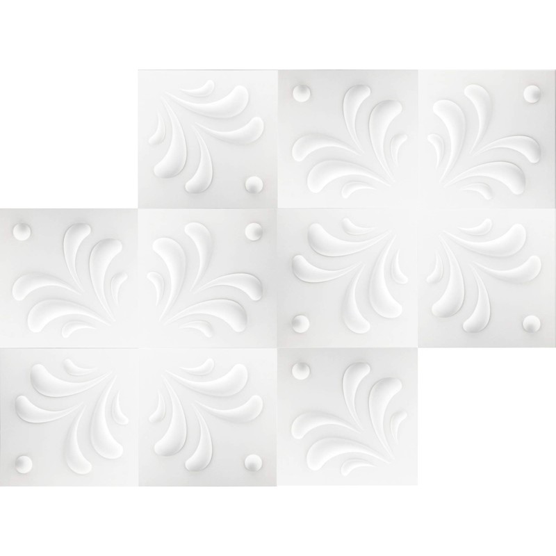 - 3D panel Jenny (1 piece) – Dimensions per panel: 500 x 500 mm (0.25 m²), max. Pattern depth: 12 mm, material thickness: approx. 2 mm. Material: bamboo fibre and sugar cane. 100% natural resources. Colour: natural white