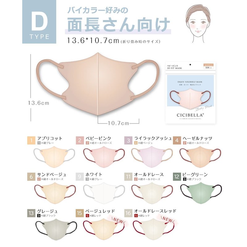 [シシベラスポーツ] マスク 不織布 立体 バイカラー 3d 面長さん向け 肌に優しいマスク 使い捨て 普通サイズ オールドレース×紐レッド
