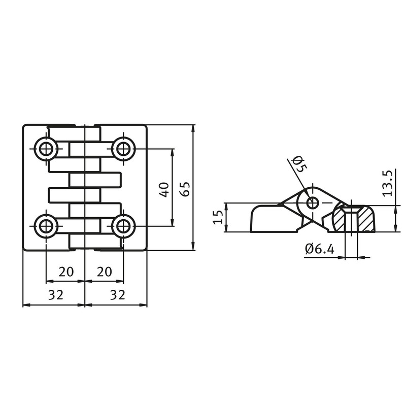 3D24_eu Heavy-Duty Hinge, Contemporary Style, Fibreglass-Reinforced Polyamide (PA) Plastic, Black, 65 x 64 mm, 180°