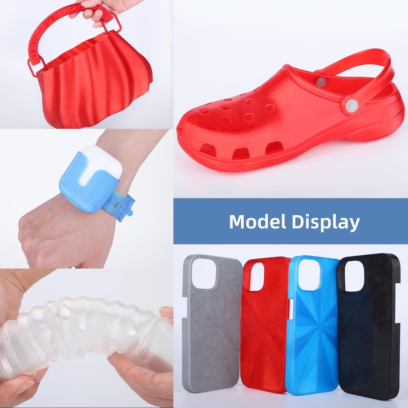 - 【High Elasticity and Soft】3DHoJor TPU filament 1.75mm has shore hardness of 95A with excellent flexibility and high elasticity. Compared with ordinary PLA filament, TPU filament can be stretched to more than 3 times their original length. Perfect for printing watch bands, phone cases,tires and so on.