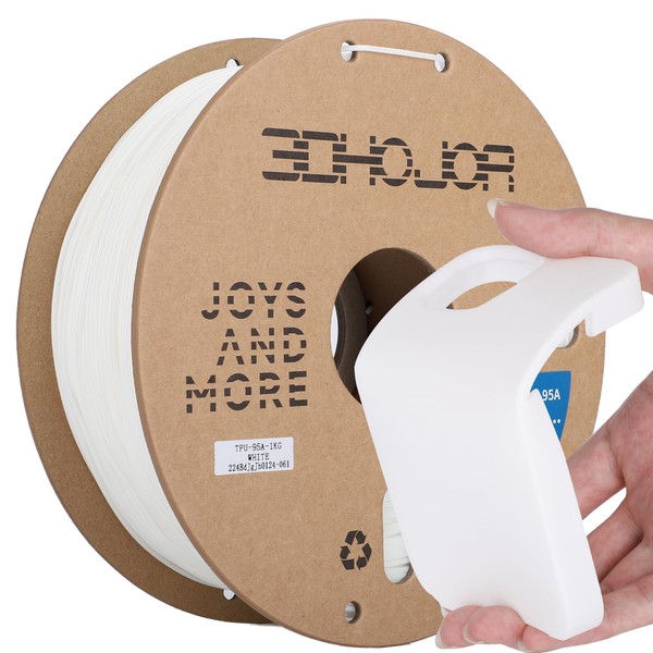 3DHojor TPU Filament 1.75mm TUP95A 3D Printer Filament Flexible Soft 3D Filament 1KG (2.2lbs) fit Most FDM 3D Printers Dimensional Accuracy +/- 0.03 mm-White