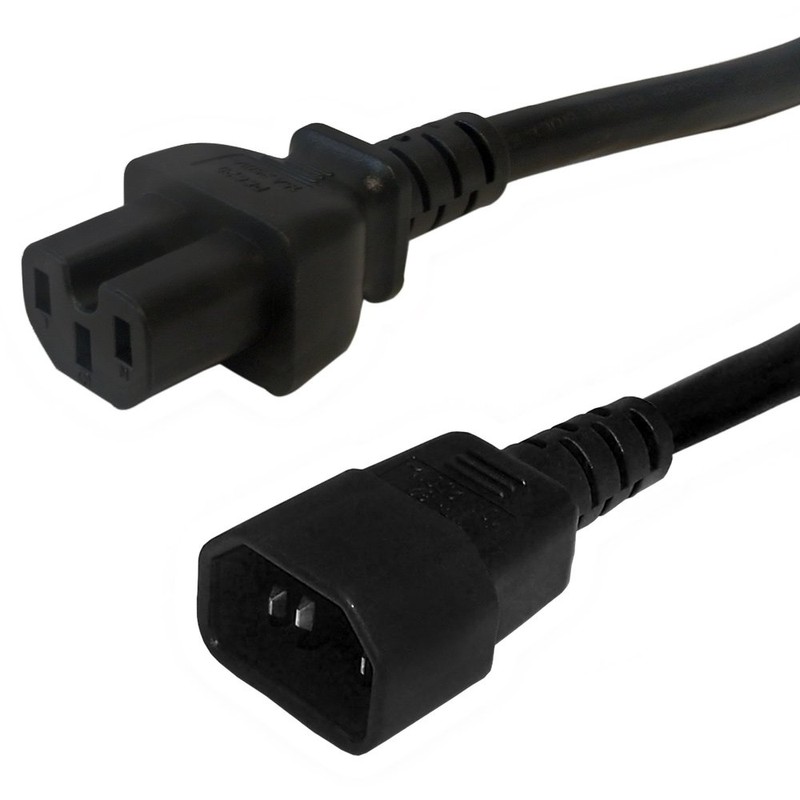 3ft IEC C14 to IEC C15 Power Cable - 14AWG SJT (15A 250V)