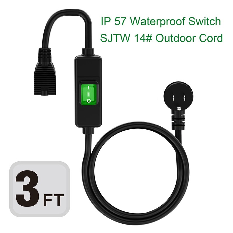 - 3FT Right Angle Inline Waterproot On Off Switch Extension Cord, Nema 5-15P to 5-15R Extension Cord with On/Off Switch SJTW 14AWG Black