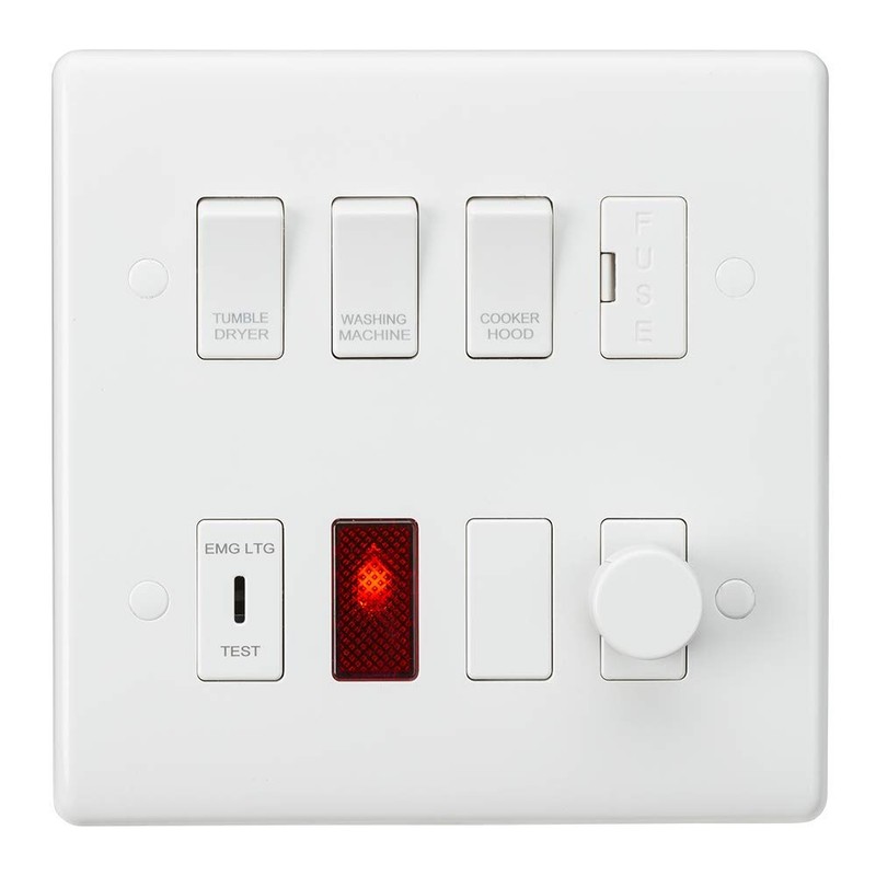 - ELEGANT - Simple curved edge range of white plastic switches and sockets from Knightsbridge