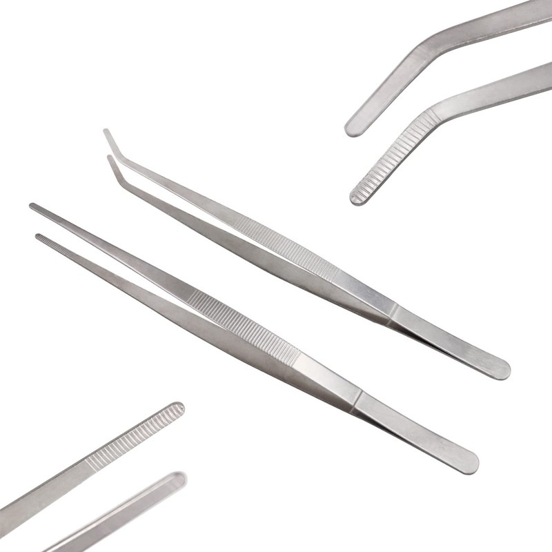 • Both straight and curved tweezers have serrated tips to to help grip stuff securely without ever slipping off. The handle is non-slip and comfortable to hold. They are long enough to prevent fingers from being bitten.