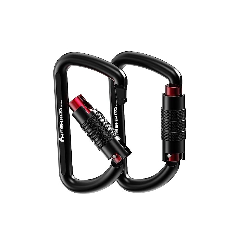 3inch 12kN Twist Locking Carabiner Clips, Weight Rating 1224kg, Auto-Lock Aluminium Carabiners Heavy Duty, Quick Release Carabina for Hammocks, Yoga Swing, Camping, Keychain, Dog Leash, Black, 2pcs