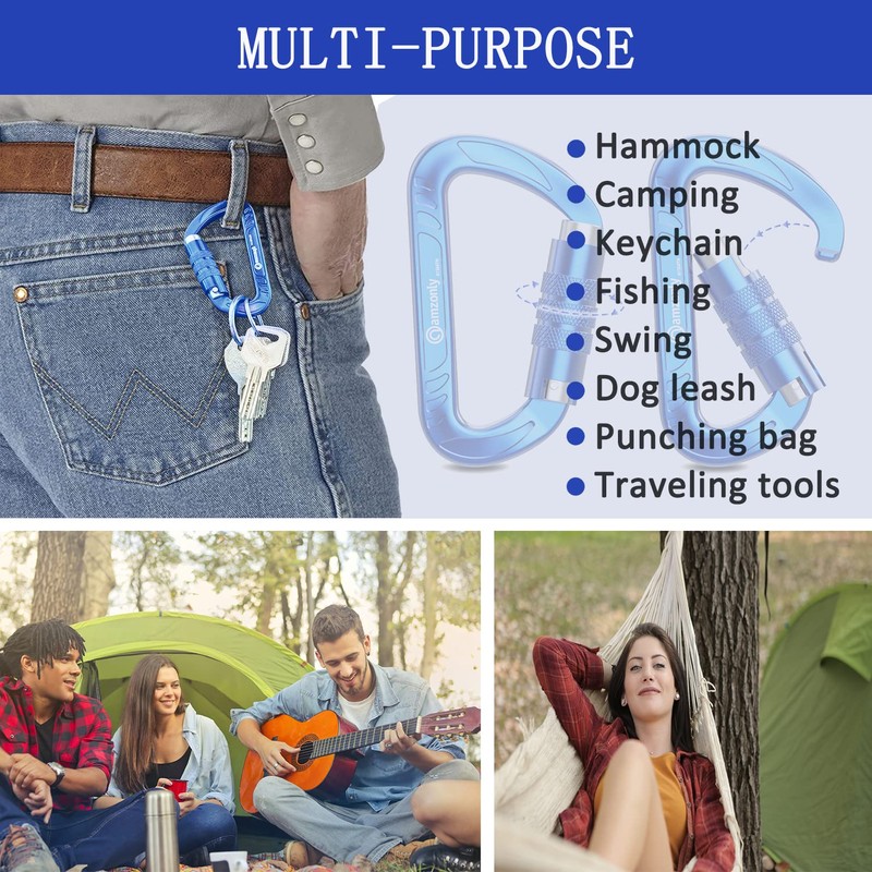 - 【STRONG CARABINER】- These two 12kN rated heavy-duty carabiners have been made with lightweight aluminum and are strong enough to support the weight of a Black rhinoceros. It can carry up to 2697 lbs. of weight!