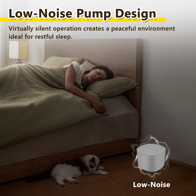 - QUIET OPERATION: The cat water dispenser features a low-noise pump design, ensuring near-silent operation and creating a peaceful environment ideal for pets to rest comfortably. Suitable for nighttime use, it ensures your pet can hydrate without disturbing the household's tranquility.