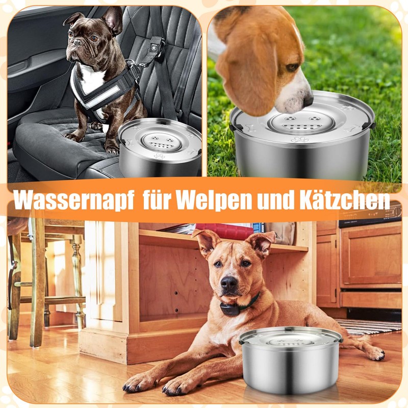 - Splash-free water bowl for dogs and cats: the innovative design ensures that your pet drinks clean without water to dog bowl. Perfect as a drinking bowl or water bowl for home and on the go. A great solution for travelling in the car or motorhome.
