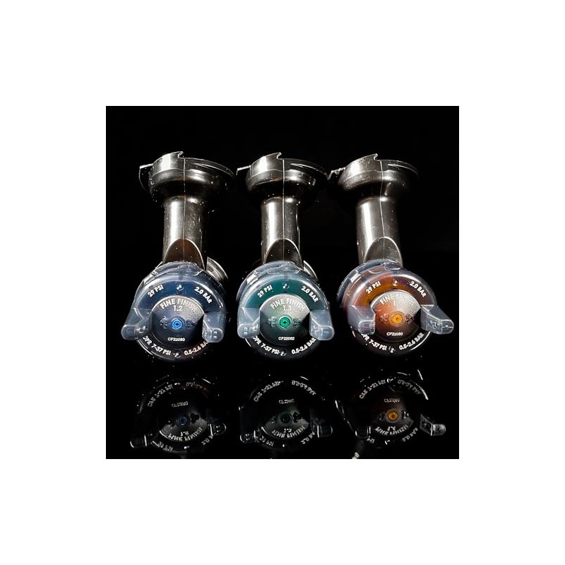 - VERSATILE: 1.2, 1.3 and 1.4 nozzle sizes to handle high-performance coatings including clearcoat, waterborne base coats, effect coats, solvent-based color and other modern low-VOC paints