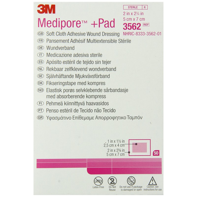 3M™ Medipore™ +Pad Soft Cloth Adhesive Wound Dressing, 3562, Dressing - 2 in x 2-3/4 in, Pad - 1 in x 1-1/2 in
