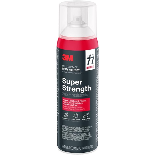 3M Super 77 Multi-Surface Spray Adhesive, 14.1 oz., Low VOC, Quick Bond, Fast Drying, Clear Finish for Foil, Foam, Paper, Metal, Plastic, Fabric, and Cardboard (77-NAT)