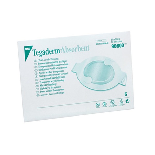 3M Tegaderm Absorbent Clear Dressing, 1-1/2" x 2-1/4" Oval, Box of 5