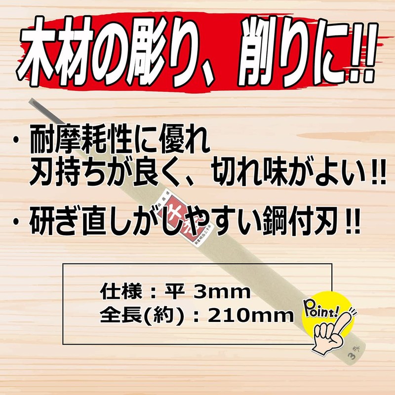 千吉 彫刻刀 鋼付彫刻刀 平 刃先3mm 彫り・削り・細工用 特殊鋼 奥行1×高さ21×幅1.8cm