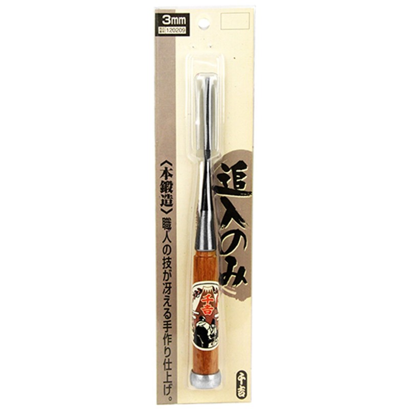千吉銅賞 ノミ 追入のみ 刃巾3mm 木工用 鋼付 赤樫柄 奥行2×高さ23×幅2cm