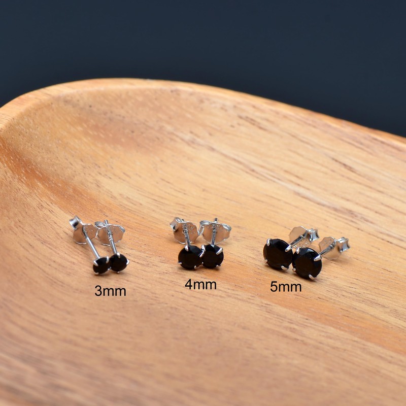 3MM Sterling Silver Earrings Obsidian Black Cubic Zirconia Studs for Women Men